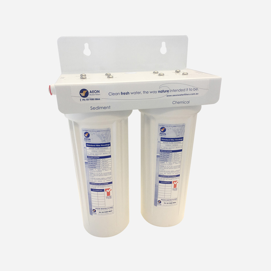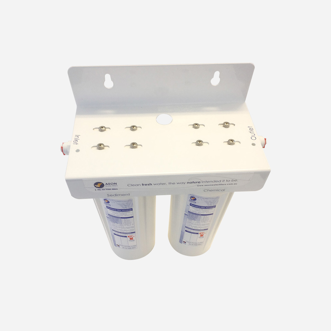 The Twin housing on a bracket is the perfect replacement for you under sink system when your current cartridge housings are starting to wear or have cracked. We recommend replacing both housings at the same time. It comes complete with a powder coated bracket, inlet and out let fittings to fit 1/4″ thread which will fit your current 1/4″ tubing. We recommend that a pressure limiting valve be fitted if the water pressure exceeds 900 kpa. There are no cartridges included. The average life span is 10 years.